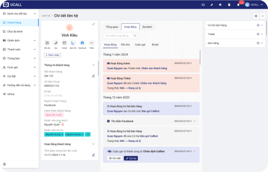 Quản lý thông tin liên hệ, đặc điểm, lịch sử trao đổi trên tất cả kênh bán.